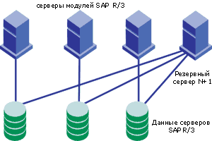 Рис.4. Кластер с топологией N+1 для ERP-системы на базе SAP R/3