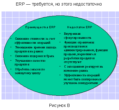Так как все больше и больше производителей внедряют системы ERP, и так как покупатели требуют большего, то очевидно, что двадцатипятилетние правила ERP не дают чистого и продолжительного конкурентного преимущества. Эффективность производства все еще требуется, но ее явно не достаточно.