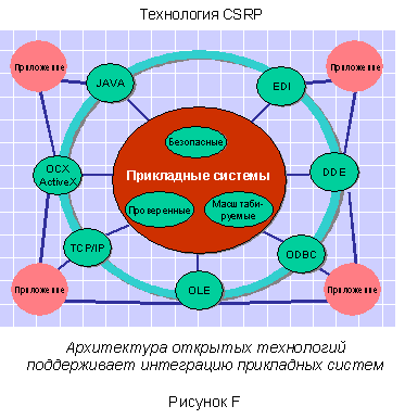Открытые технологии делают оба эти сценария и методологию CSRP реальностью. Как показано на рисунке F, для CSRP требуется использование открытых технологий, которые могут интегрировать стратегические приложения подразделений в масштабируемые, защищенные приложения масштаба предприятия. Успешное внедрение CSRP возможно только при использовании открытых технологий. Требуется переход от закрытых систем, включая системы ERP.