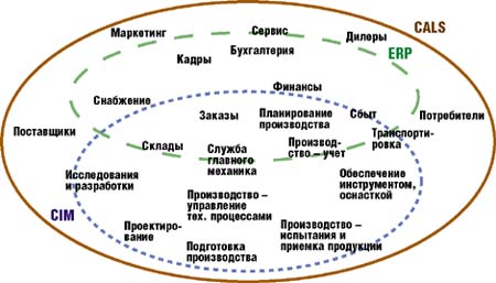 Методы CALS (Computer-aided Acquisition and Logistics Support — компьютерная поддержка процесса поставок и логистики) [CALS99] [Родников95] возникли в 80-х годах в военном ведомстве США для повышения эффективности управления и планирования в процессе заказа, разработки, организации производства, поставок и эксплуатации военной техники. CALS предусматривает однократный ввод данных, их хранение в стандартных форматах, стандартизацию интерфейсов и электронный обмен информацией между всеми организациями и их подразделениями — участниками проекта. Методы доказали свою эффективность и переносятся в настоящее время на “гражданские” отрасли промышленности. Новая концепция сохранила аббревиатуру CALS с более широким смыслом (Continuous Acquisition and Life circle Support — поддержка непрерывного жизненного цикла продукции). Проводится стандартизация ряда аспектов CALS в международной организации стандартизации ISO. Методы CALS могут использоваться вместе с MRP II/ERP и CIM. В отличие от них CALS позволяет управлять всем жизненным циклом продукции, включая маркетинг, управление комплексными проектами, обслуживанием при эксплуатации.