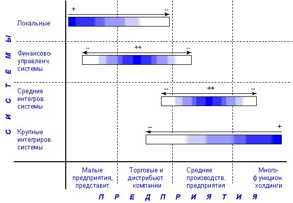 Понимая, что выбор для каждого предприятия индивидуален, мы предлагаем некоторые рекомендации относительно того, как соотносятся типы систем с размерами и направлениями бизнеса предприятий.